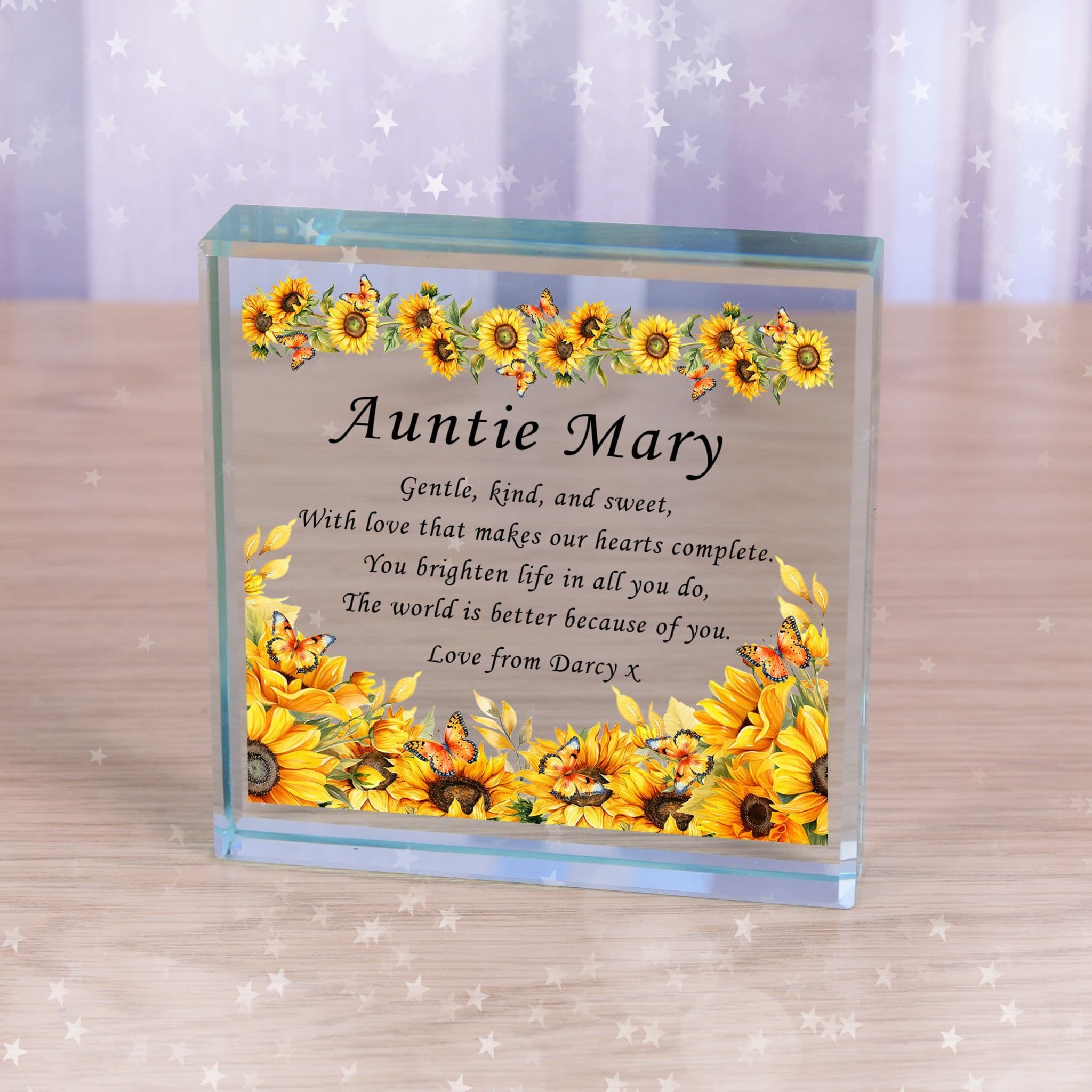 Personalised Because Of You Sunflower Crystal Token