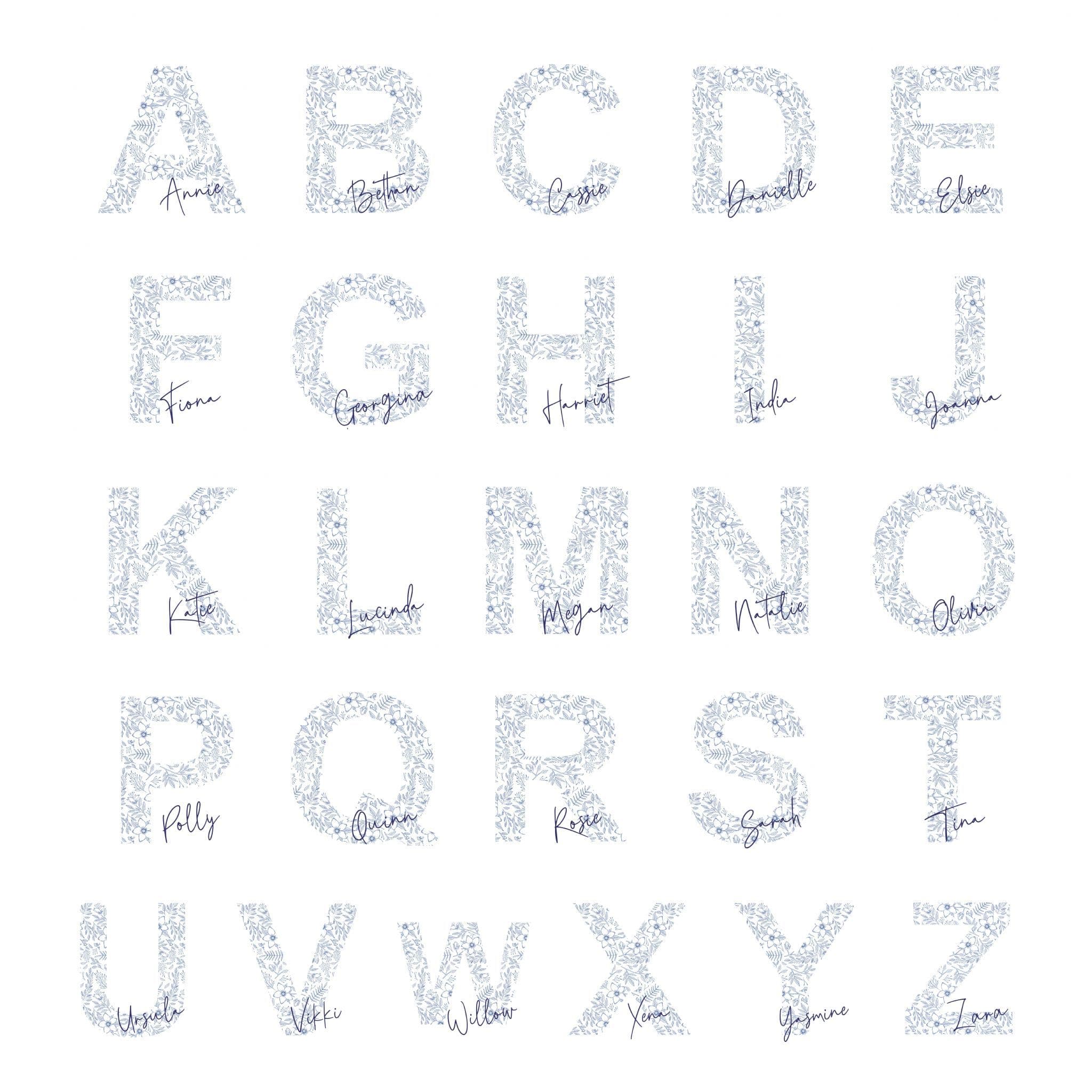 Personalised Blue Floral Initial Cushion