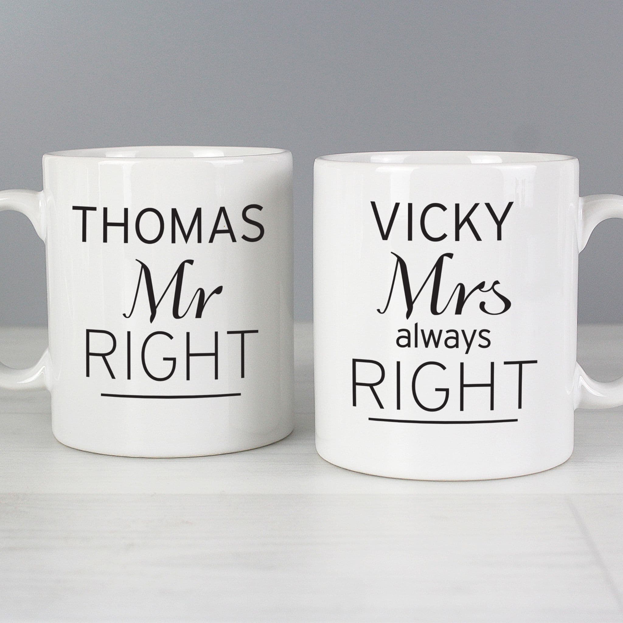 Personalised Classic Mr Right Mrs Always Right Mug Set