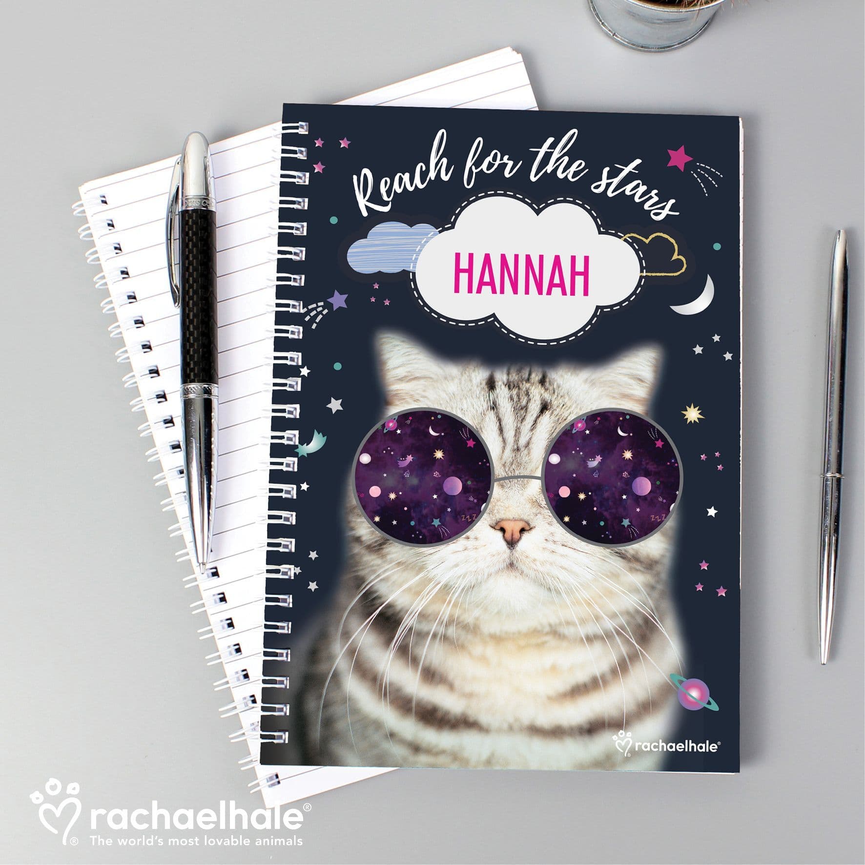 Personalised Rachael Hale Space Cat A5 Notebook