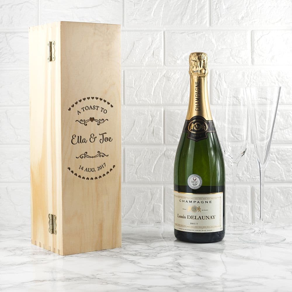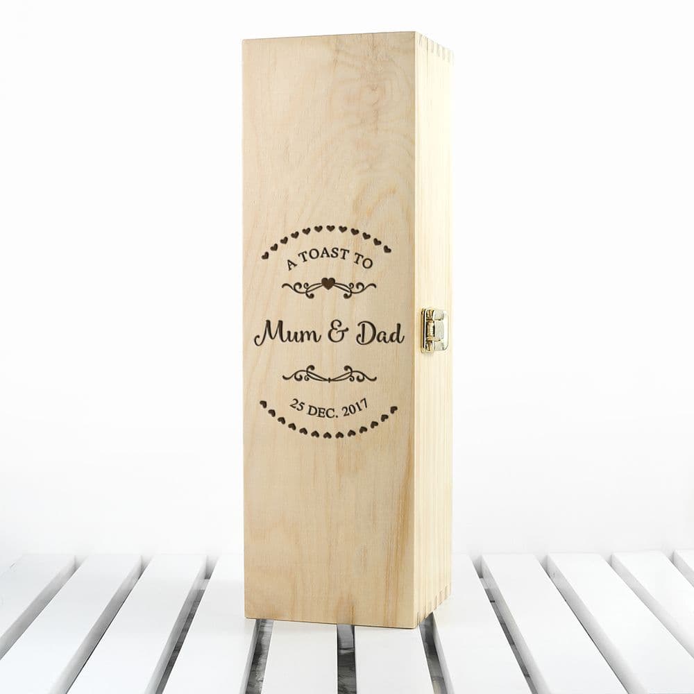 Personalised Wooden Name In Heart Couples Wine Box